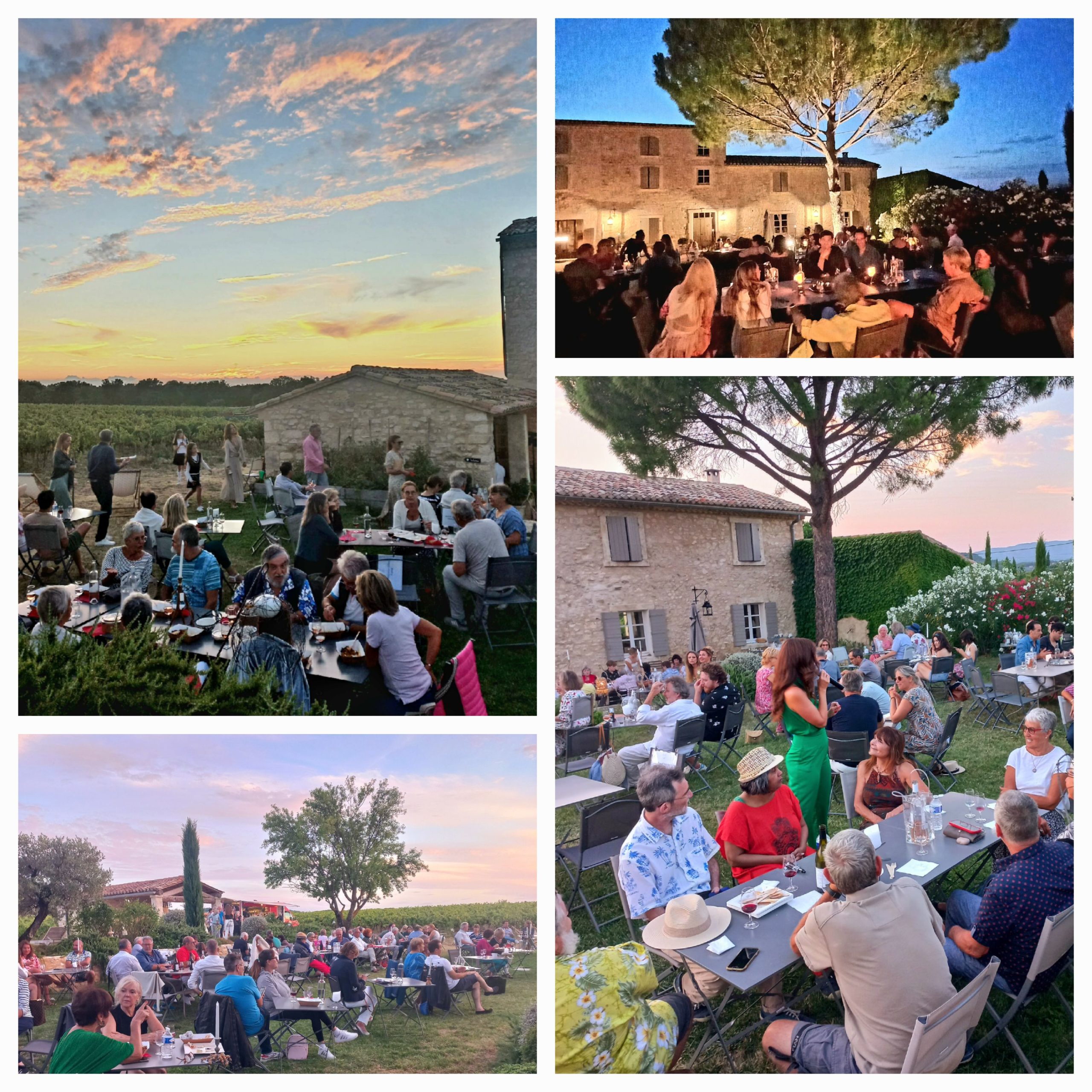 Laissez-vous emporter par l’atmosphère unique de nos dîners-concerts au Chat Blanc. Ils se déroulent dans nos jardins fleuris, au cœur de notre vignoble. Après avoir admirer le coucher de soleil, la créatrice Nathalie Maugenet de Thalie des Collines, transforme le lieu à la nuit tombée en un espace féérique grâce à une mise en lumière spécialement conçue pour l’événement.